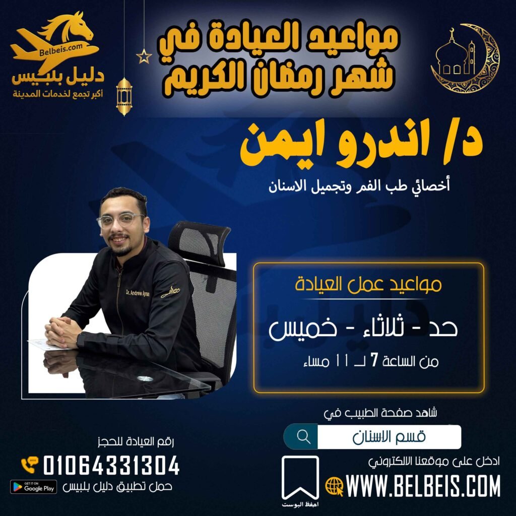 عنوان العيادة : بلبيس الشارع الجديد اعلي محل دهده للكبدة بجوار سوبر ماركت قنديل