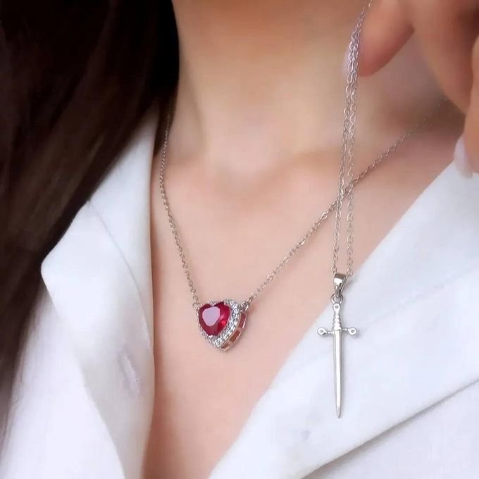 محتويات العلبة: سلسلتين (قلب + سيف) بطبقتين لإطلالة متكاملة.