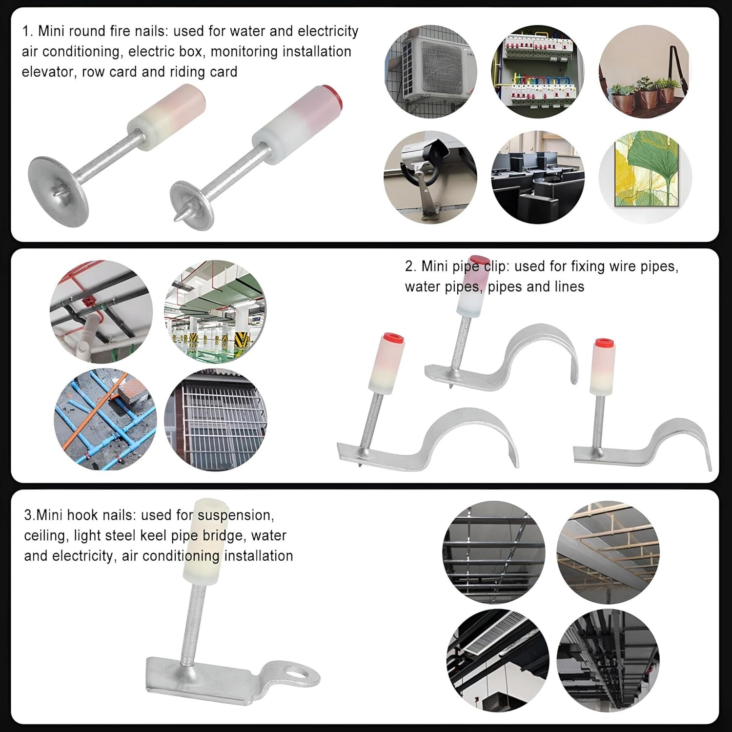 استخدامات متعددة: تعليق صور، تركيب رفوف، تثبيت صناديق كهرباء، تركيب تكييفات أو تمديدات مياه وكهربا، وغيرهم.